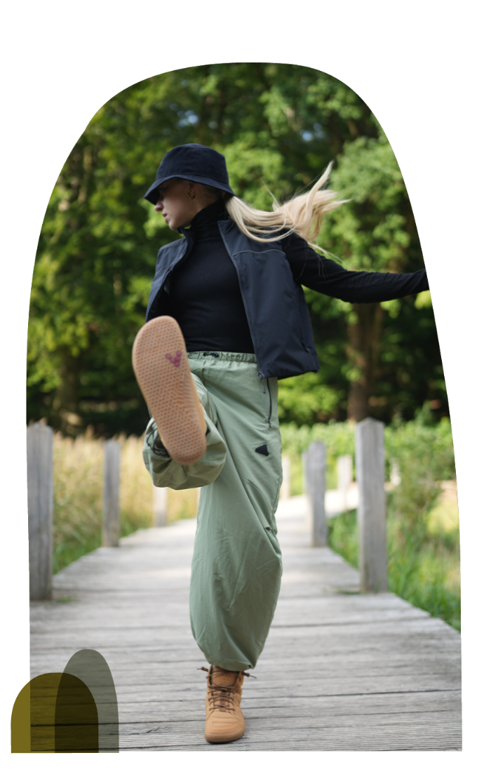 Die flache Sohle unsere Minimalschuhe fördern eine aufrechte Haltung und können dazu beitragen, langfristig Knie-, Hüft- und Rückenschmerzen zu vermeiden und zu lindern.